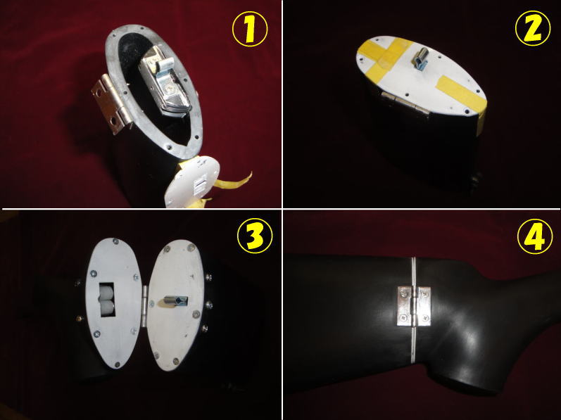 折り畳んだだけで固定されるように考えたところ、D〜Eの写真に写っているように部品を埋め込みました。ん?部品?これ、超強力な磁石と鉄板なんです。